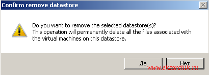 После уже снова подключаюсь через vSphere Client и что самое главное успешно на всех хранилищах, таких как Data & System делаю umount и удаляю.