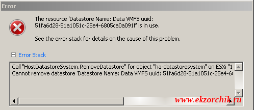 Но меня поджидает облом — видители гипервизор использует данные хранилища и удалить не дает: